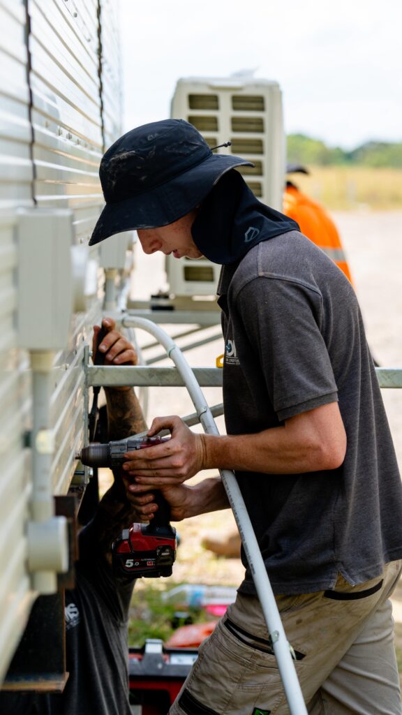 Everything – air conditioning, electrical work, safety switches, the whole lot. You deal with one team, one call, one warranty. No coordinating multiple contractors or finger-pointing if something goes wrong.